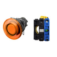 押ボタンスイッチ(φ22), 照光, 樹脂ベゼル, きのこ形, モーメンタリ, ボタンの色: 橙, IP66, ねじ端子台, 接点構成: NO/点灯ユニット/-, LEDランプ色: 橙, LEDランプ電圧: AC100/110/120V