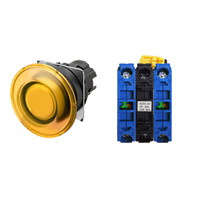 押ボタンスイッチ(φ22), 照光, 樹脂ベゼル, きのこ形, モーメンタリ, ボタンの色: 黄, IP66, ねじ端子台, 接点構成: NO/点灯ユニット/NO, LEDランプ色: 黄, LEDランプ電圧: AC200/220/230/240V