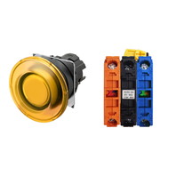 押ボタンスイッチ(φ22), 照光, 樹脂ベゼル, きのこ形, モーメンタリ, ボタンの色: 黄, IP66, ねじ端子台, 接点構成: NO/点灯ユニット/NC, LEDランプ色: 黄, LEDランプ電圧: AC/DC6V