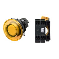 押ボタンスイッチ(φ22), 照光, 樹脂ベゼル, きのこ形, モーメンタリ, ボタンの色: 黄, IP66, プッシュインPlus端子台, 接点構成: -/点灯ユニット/NC, LEDランプ色: 黄, LEDランプ電圧: AC/DC12V