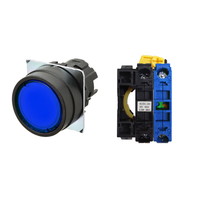 押ボタンスイッチ(φ22), 照光, 樹脂ベゼル, 平形, オルタネイト, ボタンの色: 青, IP66, ねじ端子台, 接点構成: NO/点灯ユニット/-, LEDランプ色: 青, LEDランプ電圧: AC100/110/120V