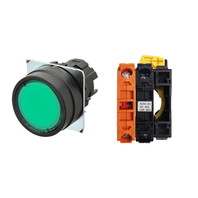 押ボタンスイッチ(φ22), 照光, 樹脂ベゼル, 平形, オルタネイト, ボタンの色: 緑, IP66, ねじ端子台, 接点構成: -/点灯ユニット/NC, LEDランプ色: 緑, LEDランプ電圧: AC100/110/120V
