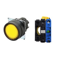 押ボタンスイッチ(φ22), 照光, 樹脂ベゼル, 平形, オルタネイト, ボタンの色: 黄, IP66, ねじ端子台, 接点構成: NO/点灯ユニット/-, LEDランプ色: 黄, LEDランプ電圧: AC/DC12V