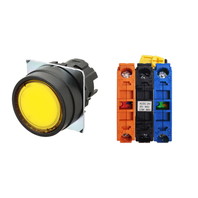 押ボタンスイッチ(φ22), 照光, 樹脂ベゼル, 平形, オルタネイト, ボタンの色: 黄, IP66, ねじ端子台, 接点構成: NO/点灯ユニット/NC, LEDランプ色: 黄, LEDランプ電圧: AC/DC24V