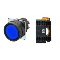 押ボタンスイッチ(φ22), 照光, 樹脂ベゼル, 平形, モーメンタリ, ボタンの色: 青, IP66, プッシュインPlus端子台, 接点構成: -/点灯ユニット/NC, LEDランプ色: 青, LEDランプ電圧: AC200/220/230/240V