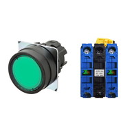 Pushbutton Switch (22-dia.), Lighted, Plastic bezel, Flat, Momentary, Button color: Green, IP66, Screw terminal block, Contacts: NO/Lighting Unit/NO, LED lamp color: Green, LED Lamp voltage: 100/110/120 VAC
