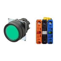 押ボタンスイッチ(φ22), 照光, 樹脂ベゼル, 平形, モーメンタリ, ボタンの色: 緑, IP66, ねじ端子台, 接点構成: NO/点灯ユニット/NC, LEDランプ色: 緑, LEDランプ電圧: AC100/110/120V