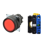 押ボタンスイッチ(φ22), 照光, 樹脂ベゼル, 平形, モーメンタリ, ボタンの色: 赤, IP66, ねじ端子台, 接点構成: NO/点灯ユニット/-, LEDランプ色: 赤, LEDランプ電圧: AC100/110/120V