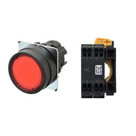 押ボタンスイッチ(φ22), 照光, 樹脂ベゼル, 平形, モーメンタリ, ボタンの色: 赤, IP66, プッシュインPlus端子台, 接点構成: -/点灯ユニット/NC, LEDランプ色: 赤, LEDランプ電圧: AC100/110/120V