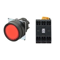 押ボタンスイッチ(φ22), 照光, 樹脂ベゼル, 平形, モーメンタリ, ボタンの色: 赤, IP66, プッシュインPlus端子台, 接点構成: NO/点灯ユニット/NC, LEDランプ色: 赤, LEDランプ電圧: AC100/110/120V