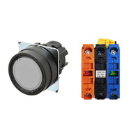 押ボタンスイッチ(φ22), 照光, 樹脂ベゼル, 平形, モーメンタリ, ボタンの色: 白, IP66, ねじ端子台, 接点構成: NO/点灯ユニット/NC, LEDランプ色: 白, LEDランプ電圧: AC/DC24V