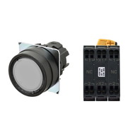 押ボタンスイッチ(φ22), 照光, 樹脂ベゼル, 平形, モーメンタリ, ボタンの色: 白, IP66, プッシュインPlus端子台, 接点構成: NC/点灯ユニット/NC, LEDランプ色: 黄, LEDランプ電圧: AC/DC12V