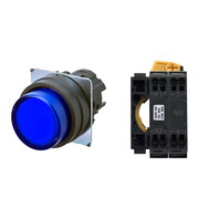 押ボタンスイッチ(φ22), 照光, 樹脂ベゼル, 突出形, オルタネイト, ボタンの色: 青, IP66, プッシュインPlus端子台, 接点構成: NO/点灯ユニット/-, LEDランプ色: 青, LEDランプ電圧: AC200/220/230/240V