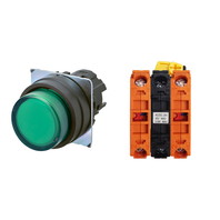 押ボタンスイッチ(φ22), 照光, 樹脂ベゼル, 突出形, オルタネイト, ボタンの色: 緑, IP66, ねじ端子台, 接点構成: NC/点灯ユニット/NC, LEDランプ色: 緑, LEDランプ電圧: AC/DC24V