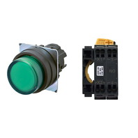 押ボタンスイッチ(φ22), 照光, 樹脂ベゼル, 突出形, オルタネイト, ボタンの色: 緑, IP66, プッシュインPlus端子台, 接点構成: NO/点灯ユニット/-, LEDランプ色: 緑, LEDランプ電圧: AC100/110/120V