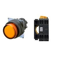 押ボタンスイッチ(φ22), 照光, 樹脂ベゼル, 突出形, オルタネイト, ボタンの色: 橙, IP66, プッシュインPlus端子台, 接点構成: NO/点灯ユニット/-, LEDランプ色: 橙, LEDランプ電圧: AC200/220/230/240V