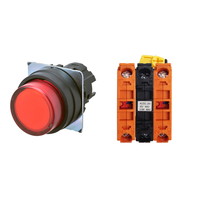 押ボタンスイッチ(φ22), 照光, 樹脂ベゼル, 突出形, オルタネイト, ボタンの色: 赤, IP66, ねじ端子台, 接点構成: NC/点灯ユニット/NC, LEDランプ色: 赤, LEDランプ電圧: AC/DC24V