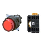 押ボタンスイッチ(φ22), 照光, 樹脂ベゼル, 突出形, オルタネイト, ボタンの色: 赤, IP66, プッシュインPlus端子台, 接点構成: NO/点灯ユニット/-, LEDランプ色: 赤, LEDランプ電圧: AC100/110/120V