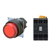 押ボタンスイッチ(φ22), 照光, 樹脂ベゼル, 突出形, オルタネイト, ボタンの色: 赤, IP66, プッシュインPlus端子台, 接点構成: NO/点灯ユニット/NC, LEDランプ色: 赤, LEDランプ電圧: AC/DC6V