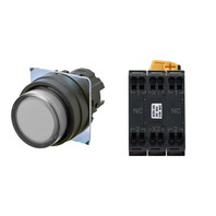 押ボタンスイッチ(φ22), 照光, 樹脂ベゼル, 突出形, オルタネイト, ボタンの色: 白, IP66, プッシュインPlus端子台, 接点構成: NC/点灯ユニット/NC, LEDランプ色: 白, LEDランプ電圧: AC/DC24V