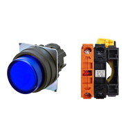 押ボタンスイッチ(φ22), 照光, 樹脂ベゼル, 突出形, モーメンタリ, ボタンの色: 青, IP66, ねじ端子台, 接点構成: -/点灯ユニット/NC, LEDランプ色: 青, LEDランプ電圧: AC/DC24V