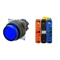 押ボタンスイッチ(φ22), 照光, 樹脂ベゼル, 突出形, モーメンタリ, ボタンの色: 青, IP66, ねじ端子台, 接点構成: NO/点灯ユニット/NC, LEDランプ色: 青, LEDランプ電圧: AC/DC6V
