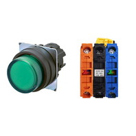 押ボタンスイッチ(φ22), 照光, 樹脂ベゼル, 突出形, モーメンタリ, ボタンの色: 緑, IP66, ねじ端子台, 接点構成: NO/点灯ユニット/NC, LEDランプ色: 緑, LEDランプ電圧: AC/DC12V