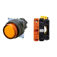 押ボタンスイッチ(φ22), 照光, 樹脂ベゼル, 突出形, モーメンタリ, ボタンの色: 橙, IP66, ねじ端子台, 接点構成: -/点灯ユニット/NC, LEDランプ色: 橙, LEDランプ電圧: AC200/220/230/240V