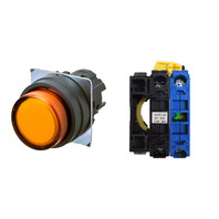 押ボタンスイッチ(φ22), 照光, 樹脂ベゼル, 突出形, モーメンタリ, ボタンの色: 橙, IP66, ねじ端子台, 接点構成: NO/点灯ユニット/-, LEDランプ色: 橙, LEDランプ電圧: AC200/220/230/240V