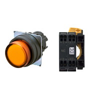 押ボタンスイッチ(φ22), 照光, 樹脂ベゼル, 突出形, モーメンタリ, ボタンの色: 橙, IP66, プッシュインPlus端子台, 接点構成: -/点灯ユニット/NC, LEDランプ色: 橙, LEDランプ電圧: AC100/110/120V