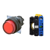 押ボタンスイッチ(φ22), 照光, 樹脂ベゼル, 突出形, モーメンタリ, ボタンの色: 赤, IP66, ねじ端子台, 接点構成: NO/点灯ユニット/-, LEDランプ色: 赤, LEDランプ電圧: AC/DC12V