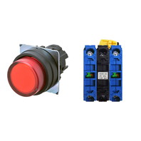 押ボタンスイッチ(φ22), 照光, 樹脂ベゼル, 突出形, モーメンタリ, ボタンの色: 赤, IP66, ねじ端子台, 接点構成: NO/点灯ユニット/NO, LEDランプ色: 赤, LEDランプ電圧: AC/DC24V