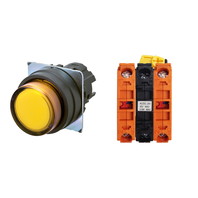 Pushbutton Switch (22-dia.), Lighted, Plastic bezel, Projected, Momentary, Button color: Yellow, IP66, Screw terminal block, Contacts: NC/Lighting Unit/NC, LED lamp color: Yellow, LED Lamp voltage: 100/110/120 VAC