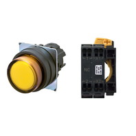 押ボタンスイッチ(φ22), 照光, 樹脂ベゼル, 突出形, モーメンタリ, ボタンの色: 黄, IP66, プッシュインPlus端子台, 接点構成: -/点灯ユニット/NC, LEDランプ色: 黄, LEDランプ電圧: AC100/110/120V