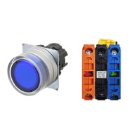 押ボタンスイッチ(φ22), 照光, 金属ベゼル, フルガード形, オルタネイト, ボタンの色: 青, IP66, ねじ端子台, 接点構成: NO/点灯ユニット/NC, LEDランプ色: 青, LEDランプ電圧: AC200/220/230/240V