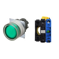 押ボタンスイッチ(φ22), 照光, 金属ベゼル, フルガード形, オルタネイト, ボタンの色: 緑, IP66, ねじ端子台, 接点構成: NO/点灯ユニット/-, LEDランプ色: 緑, LEDランプ電圧: AC100/110/120V