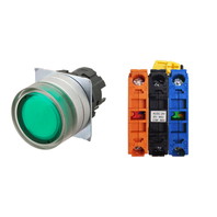 押ボタンスイッチ(φ22), 照光, 金属ベゼル, フルガード形, オルタネイト, ボタンの色: 緑, IP66, ねじ端子台, 接点構成: NO/点灯ユニット/NC, LEDランプ色: 緑, LEDランプ電圧: AC/DC6V