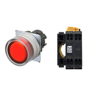 押ボタンスイッチ(φ22), 照光, 金属ベゼル, フルガード形, オルタネイト, ボタンの色: 赤, IP66, プッシュインPlus端子台, 接点構成: NO/点灯ユニット/-, LEDランプ色: 赤, LEDランプ電圧: AC/DC12V