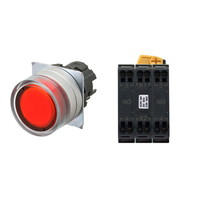 押ボタンスイッチ(φ22), 照光, 金属ベゼル, フルガード形, オルタネイト, ボタンの色: 赤, IP66, プッシュインPlus端子台, 接点構成: NO/点灯ユニット/NO, LEDランプ色: 赤, LEDランプ電圧: AC/DC24V
