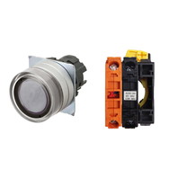押ボタンスイッチ(φ22), 照光, 金属ベゼル, フルガード形, オルタネイト, ボタンの色: 白, IP66, ねじ端子台, 接点構成: -/点灯ユニット/NC, LEDランプ色: 白, LEDランプ電圧: AC/DC12V