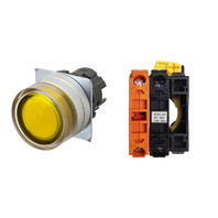 押ボタンスイッチ(φ22), 照光, 金属ベゼル, フルガード形, オルタネイト, ボタンの色: 黄, IP66, ねじ端子台, 接点構成: -/点灯ユニット/NC, LEDランプ色: 黄, LEDランプ電圧: AC200/220/230/240V