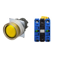 押ボタンスイッチ(φ22), 照光, 金属ベゼル, フルガード形, オルタネイト, ボタンの色: 黄, IP66, ねじ端子台, 接点構成: NO/点灯ユニット/NO, LEDランプ色: 黄, LEDランプ電圧: AC200/220/230/240V