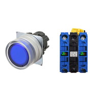 押ボタンスイッチ(φ22), 照光, 金属ベゼル, フルガード形, モーメンタリ, ボタンの色: 青, IP66, ねじ端子台, 接点構成: NO/点灯ユニット/NO, LEDランプ色: 青, LEDランプ電圧: AC/DC24V