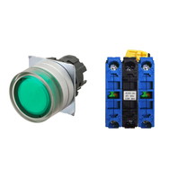 押ボタンスイッチ(φ22), 照光, 金属ベゼル, フルガード形, モーメンタリ, ボタンの色: 緑, IP66, ねじ端子台, 接点構成: NO/点灯ユニット/NO, LEDランプ色: 緑, LEDランプ電圧: AC/DC6V