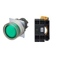 押ボタンスイッチ(φ22), 照光, 金属ベゼル, フルガード形, モーメンタリ, ボタンの色: 緑, IP66, プッシュインPlus端子台, 接点構成: -/点灯ユニット/NC, LEDランプ色: 緑, LEDランプ電圧: AC/DC6V