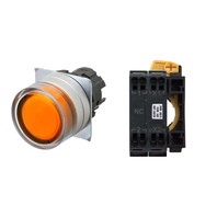 押ボタンスイッチ(φ22), 照光, 金属ベゼル, フルガード形, モーメンタリ, ボタンの色: 橙, IP66, プッシュインPlus端子台, 接点構成: -/点灯ユニット/NC, LEDランプ色: 橙, LEDランプ電圧: AC100/110/120V