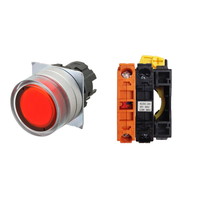 押ボタンスイッチ(φ22), 照光, 金属ベゼル, フルガード形, モーメンタリ, ボタンの色: 赤, IP66, ねじ端子台, 接点構成: -/点灯ユニット/NC, LEDランプ色: 赤, LEDランプ電圧: AC/DC24V