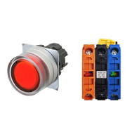 押ボタンスイッチ(φ22), 照光, 金属ベゼル, フルガード形, モーメンタリ, ボタンの色: 赤, IP66, ねじ端子台, 接点構成: NO/点灯ユニット/NC, LEDランプ色: 赤, LEDランプ電圧: AC/DC6V