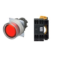 押ボタンスイッチ(φ22), 照光, 金属ベゼル, フルガード形, モーメンタリ, ボタンの色: 赤, IP66, プッシュインPlus端子台, 接点構成: -/点灯ユニット/NC, LEDランプ色: 赤, LEDランプ電圧: AC/DC12V