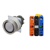押ボタンスイッチ(φ22), 照光, 金属ベゼル, フルガード形, モーメンタリ, ボタンの色: 白, IP66, ねじ端子台, 接点構成: NO/点灯ユニット/NC, LEDランプ色: 白, LEDランプ電圧: AC100/110/120V